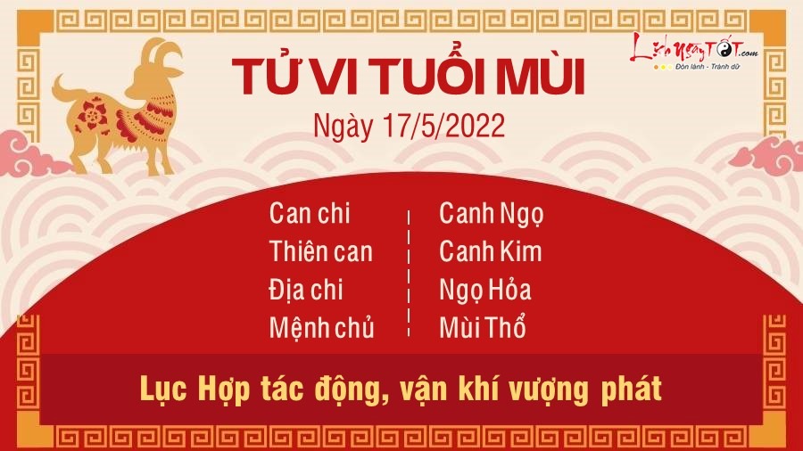 Lục Hợp che chở, vận khí ngày này của tuổi Mùi vô cùng vượng phát. Sự nghiệp có bước tiến quan trọng nhờ may mắn gặp được người giúp đỡ, hướng dẫn đi đúng hướng. Tận dụng được thời cơ này nên bản mệnh đã nắm bắt được những gì có lợi cho mình, đạt được thành tựu đáng kể. Vận trình tài lộc cũng đang trên đà tăng tiến, hôm nay dù là người làm công ăn lương hay buôn bán kinh doanh cũng có chút lộc lá về tay, tiền tiêu rủng rỉnh không lo thiếu thốn. Nhưng bạn vẫn nên chi tiêu có kế hoạch nhé, không nên phung phí kẻo khi túng thiếu lại trắng tay. Chuyện tình cảm cũng đang khá tốt đẹp. Nhờ Hỏa dưỡng Thổ, đôi lứa có sự ăn ý ngầm mà chẳng cần phải nói ra miệng, giữa hai người không còn tồn tại bất cứ bí mật gì, luôn thoải mái chia sẻ và tâm sự với nhau về những niềm vui, nỗi buồn trong cuộc sống.
