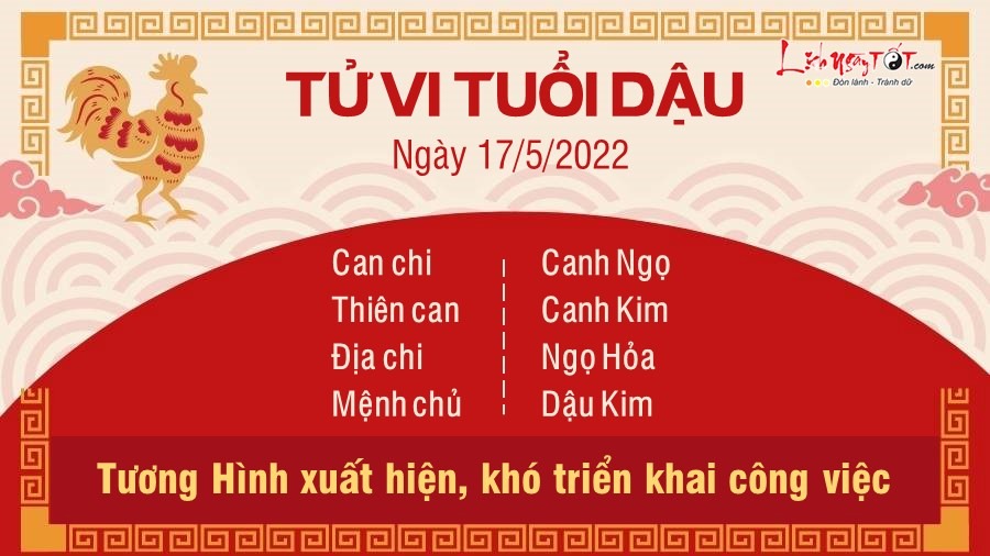Ngọ - Dậu Tương Hình gây khó khăn cho Dậu khi muốn triển khai công việc theo đúng kế hoạch đã đặt ra. Bạn không có quá nhiều hậu thuẫn, mọi thứ đều phải tự mình cáng đáng nên quá trình vừa vất vả vừa tự mày mò. Hãy coi như đây là cơ hội rèn luyện bản lĩnh của mình, đừng vội bỏ cuộc. Hung tinh Kiếp Tài còn cho thấy bản mệnh có thể gặp vài khó khăn trong chuyện tiền bạc vào ngày mới này. Sự hiếu thắng có thể làm người tuổi này thất bại nặng nề, do muốn thể hiện bản thân với người khác mà vung tiền vào những việc chẳng mang lại lợi ích gì, tiền mất tật mang. Hỏa khắc Kim, mối quan hệ giữa bạn và người ấy đang ngày càng xuất hiện nhiều vấn đề cũng bởi cả hai ít dành thời gian quan tâm và tương tác với nhau. Ai cũng có công việc riêng của mình nhưng tình cảm không được bồi dưỡng sẽ rất dễ đổ vỡ.