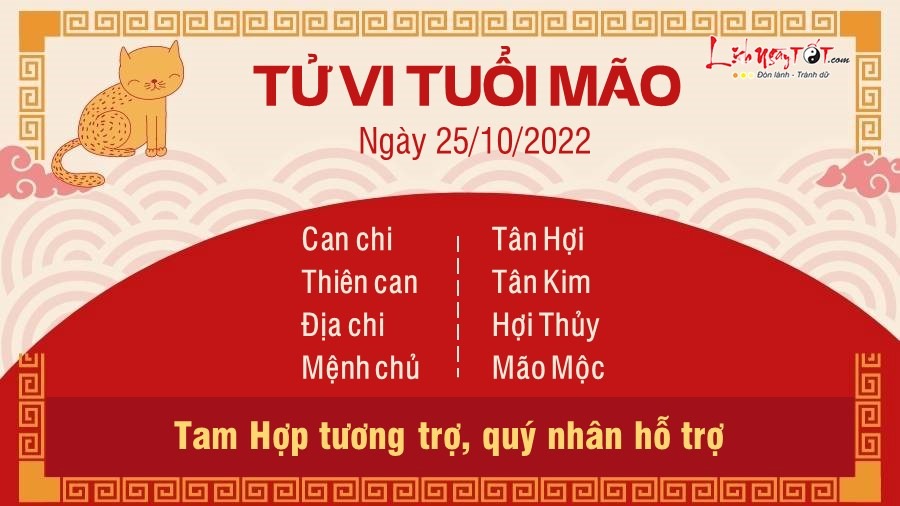 Người tuổi Mão gặp được Tam Hợp cục nên có cơ may nhận được sự hỗ trợ từ quý nhân để tìm ra cách tháo gỡ những vướng mắc trong công việc của mình. Dưới sự chỉ dẫn của quý nhân, bạn sẽ vượt qua được khó khăn và hoàn thành công việc, đạt được một số thành tựu nhỏ hoặc mục tiêu đã đề ra từ trước đó. Đặc biệt, con giáp này cũng sẽ có cơ may đón tiền về túi. Người buôn bán kinh doanh có một ngày phát tài, tiền bạc rủng rỉnh khi hàng hóa bán chạy như tôm tươi. Không chỉ vậy, một vài khoản nợ khó đòi bất ngờ được trả lại nên bản mệnh càng có thêm kinh phí để tiến hành các dự định và kế hoạch mới của mình. Thủy sinh Mộc, vận trình tình cảm khởi sắc, đôi lứa xứng đôi. Bản mệnh và người ấy có sự hài hòa về mặt tính cách và quan điểm sống nên luôn biết thông cảm và thấu hiểu cho nhau. Về cơ bản con giáp này sẽ có khoảng thời gian hạnh phúc, ấm áp và đầy ý nghĩa bên một nửa yêu thương của mình.