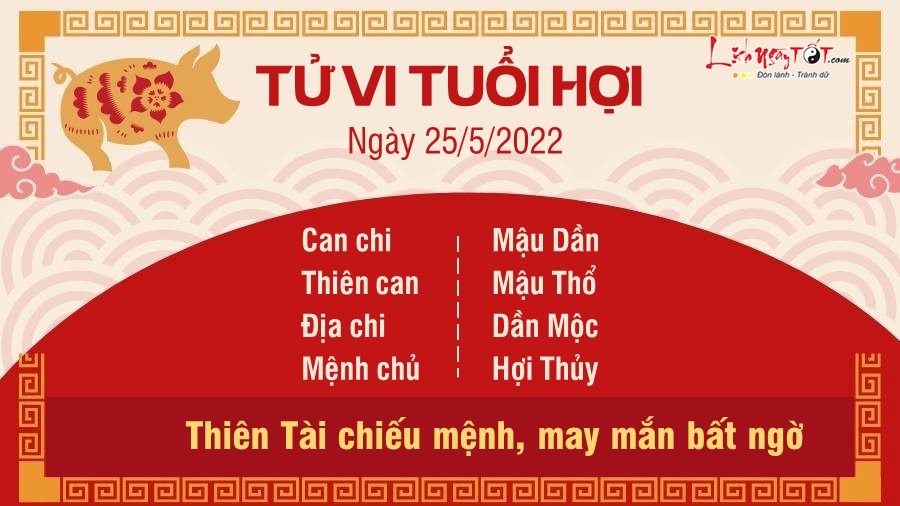 Nhờ Thiên Tài chiếu mệnh nên những bạn tuổi Hợi hôm nay nhanh nhẹn hơn mọi ngày, cân được cả việc phụ lẫn việc chính. Thi thoảng dễ gặp may như trúng thưởng, được khách khen hoặc được khen bất ngờ. Lưu ý dù may mắn đến đâu cũng nên khiêm tốn kẻo mất lộc. Nay bản mệnh hợp tác làm ăn có lợi, nhân duyên hài hòa, tình cảm tốt đẹp là nhờ vào Lục Hợp. Ở nhà hay ăn nói bộp chộp là vậy nhưng khi ra ngoài con giáp này cực khéo trong đối nhân xử thế, chẳng để ai chịu thiệt bao giờ. Nhờ Thủy sinh Mộc nên ngày hôm nay, tình hình tài chính của Hợi khá ổn định nên bạn không cần phải lo lắng quá nhiều. Bạn có thu nhập cao đủ để trang trải cuộc sống. Nhiều bạn trẻ nhanh nhẹn hơn thì hay kiếm được tiền trên mạng xã hội.