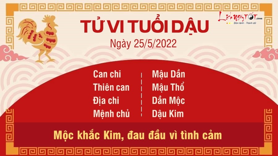 Vận lâm Thương Quan nên bản mệnh dễ bị mất chức, bỏ học, thôi việc, mất quyền lợi trong công việc. Đi đâu làm gì cũng phải ý tứ, nói xấu ai cũng phải ngó trước ngó sau một chút. Dậu thông minh nhưng còn thiếu sự khiêm tốn, khéo léo để công việc được như ý. Thứ 4 này cục diện Mộc khắc Kim khiến tuổi Dậu đau đầu vì tình cảm khá nhiều. Nhiều bạn nam tuổi này vẫn chưa lấy được vợ là do kén cá chọn canh, quá ham chơi. Người có gia đình vì áp lực cơm áo gạo tiền nên hay gắt gỏng với con cái, cha mẹ. Tuổi này hôm nay không nên mong cầu tiền bạc mà nên cầu sức khỏe. Gần đây bạn ăn uống ngủ nghỉ thất thường khiến sức khỏe giảm sút. Muốn kiếm được tiền thì cơ thể phải khỏe mạnh, đừng tham công tiếc việc.