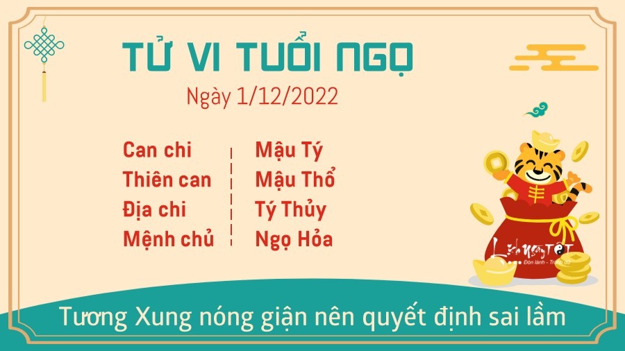Lục Xung nhắc nhở bạn đừng vì nóng giận mà có quyết định sai lầm. Bạn dễ bị thao túng tâm lý khi người ta hiểu rõ hoàn cảnh và điểm yếu của bạn. Hãy bình tĩnh lại để tránh rắc rối xảy ra nhé. Chính ấn mang lại cho con giáp tuổi Ngọ cảm giác may mắn được làm việc trong môi trường lý tưởng, đồng nghiệp và cấp trên đều sẵn sàng hỗ trợ cho bạn khi cần. Điều này giúp bạn có thể thoải mái phát huy năng lực của mình. Khi bạn thay đổi bản thân theo chiều hướng tích cực thì mối quan hệ của bạn mới có thể cải thiện. Người ấy dù yêu thương nhưng không thể nào chịu đựng mãi sự quá quắt của bạn.