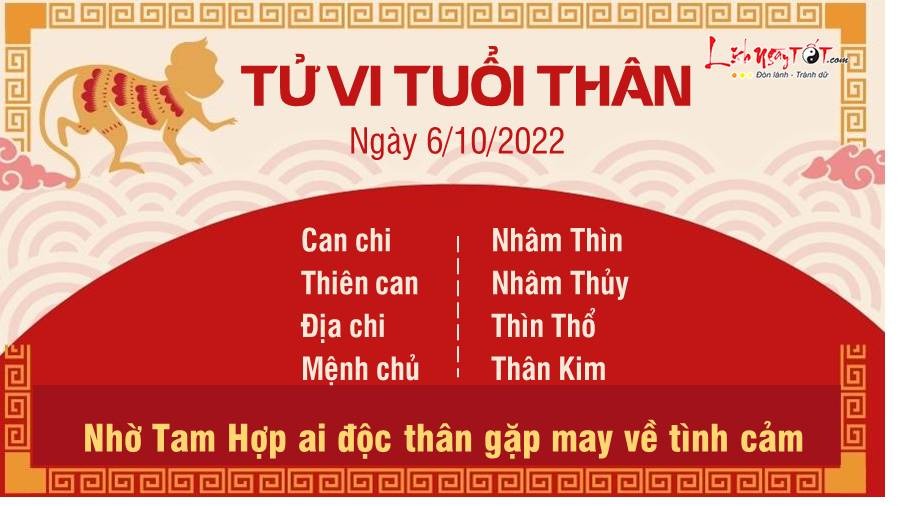 Ngày có Tam Hợp ghé thăm, người độc thân gặp may mắn trong tình cảm, tuy nhiên nên hiểu rằng mọi thứ ban đầu có thể dễ dàng nhưng một hành trình dài đòi hỏi bạn thật nhiều nhẫn nại, nỗ lực. Đôi khi, có những việc bạn cần học cách nhẫn nhịn chờ đợi. Người tuổi Thân có thể nhận được tin vui liên quan đến sự phát triển bản thân khi được Thiên Ấn che chở. Bạn sẽ có được sự công nhận và giúp đỡ của mọi người xung quanh. Ngũ hành tương sinh dự báo tình hình sức khỏe khởi sắc, nhất là những ai đang kiên trì theo đuổi những chế độ cải thiện cơ thể lành mạnh. Nhiều người lấy lại được vóc dáng trẻ trung, ít mỡ thừa và cảm nhận cơ thể của mình nhẹ nhõm hơn.