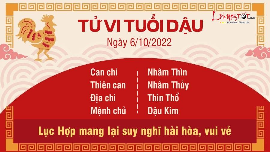 Lục Hợp mang lại suy nghĩ hài hòa, vui vẻ cho con giáp tuổi Dậu trong ngày hôm nay. Nhờ thế mà khi ai đó có góp ý gì bạn cũng đón nhận với thái độ tích cực, không hề buồn lòng vì bất cứ ai. Chính Ấn xuất hiện cho thấy hôm nay có rất nhiều kỳ vọng được đặt lên vai con giáp tuổi Dậu, bạn cần cho thấy rõ rằng mình có thể làm được những điều gì. Đừng ôm đồm và rồi khiến người khác thất vọng còn bản thân mệt mỏi. Ngũ hành tương sinh cho thấy tài chính của bản mệnh được cải thiện, tiền bạc rủng rỉnh. Bạn ít có những khoản phát sinh trong thời gian này, nhờ đó mà tiết kiệm được một khoản kha khá.