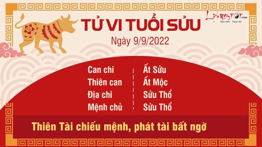 Thiên Tài chiếu mệnh, người tuổi Sửu có cơ hội phát tài bất ngờ trong ngày hôm nay nhờ các trò xổ số hoặc trúng thưởng. Với khoản tiền từ trên trời rơi xuống này, bạn cần có cách sử dụng và đầu tư đúng đắn, chớ nên dành tất cả cho việc mua sắm, chơi bời. Với người làm ăn kinh doanh, bạn thường xuyên tìm ra những cách thực hiện mới trong những cách thức kiếm tiền đã cũ, nhờ vậy mà bạn luôn cảm thấy hăng hái và ngập tràn hứng khởi, tiền cũng chảy về túi bạn nhanh chóng hơn hẳn đối thủ. Thai thần ở hướng chính Nam phía ngoài của phòng thai phụ, giường nằm ngủ và phòng vệ sinh. Do đó, không nên lui tới, di chuyển vị trí hoặc tiến hành sửa chữa những nơi nảy. Bởi việc làm đó có thể làm động Thai thần, ảnh hưởng đến cả người mẹ và thai nhi.