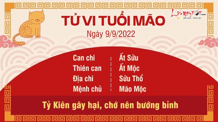 Tỷ Kiên gây hại, tuổi Mão bỗng trở thành một người vô cùng bướng bỉnh, một khi đã quyết tâm làm việc gì là sẽ làm đến cùng, thậm chí bỏ ngoài tai ý kiến của mọi người xung quanh. Bạn cho rằng chỉ có mình là người trong cuộc mới hiểu rõ mọi điều. Dù đang giữ vị trí nào trong tập thể, bản mệnh cũng nên học cách lắng nghe góp ý của mọi người. Chỉ khi chịu lắng nghe, bạn mới phát hiện ra những khuyết điểm của bản thân và những điểm chưa hợp lý trong kế hoạch của mình. Mộc khắc Thổ, con giáp này chớ nên ghen tuông vô lý khi chưa tìm ra được những bằng chứng thuyết phục. Thay vì việc nghi ngờ người ấy và nghe theo những lời đồn thổi bên ngoài, bạn hãy thử trò chuyện với đối phương trước xem sao.