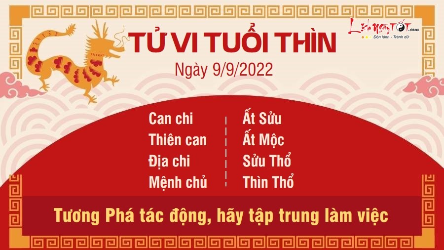 Cục diện Tương Phá khuyên người tuổi Thìn cần phải chấn chỉnh lại tinh thần làm việc của mình, không nên quá ham vui hoặc lười biếng mà quên đi mất nhiệm vụ chính. Đừng để lỗi lầm xảy ra rồi mới cảm thấy hối tiếc. Trong phương diện tiền bạc, bản mệnh chớ nên chi tiêu quá tốn kém cho những món đồ không thật sự cần thiết, nếu không thì lúc nào bạn cũng sẽ thấy túng thiếu. Hãy có kế hoạch chi tiêu phù hợp và nhớ để dành 1 khoản tiền dự phòng cho những sự cố bất ngờ. Nếu có ý định xuất hành trong ngày hôm nay, bạn nên đi về hướng Tây Bắc để gặp Hỷ Thần và hướng Đông Nam để gặp Tài Thần, giúp mọi việc được tiến hành một cách suôn sẻ và thuận lợi hơn.