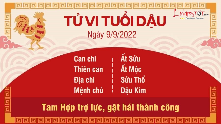 Dưới sự giúp sức của Tam Hợp, người tuổi Dậu rất tập trung vào công việc của mình, nhất là trong các vấn đề nhỏ nhặt, nhờ vậy mà bạn hạn chế được nhiều rắc rối bất ngờ phát sinh, thậm chí chạm tay đến thành công bất ngờ. Với người làm đầu tư, kinh doanh, bản mệnh có thể kiếm được một khoản kha khá nhờ những mối đầu tư trước đó. Hãy tiếp tục đi theo con đường mình đã vạch ra, đừng ngại khó khăn vất vả, bởi đó là 1 con đường triển vọng đấy. Thổ sinh Kim, bạn cảm thấy vô cùng hạnh phúc vì nửa kia luôn quan tâm đến mình. Mỗi khi bạn có tâm sự, người ấy sẽ nhận ra ngay lập tức mà không cần bạn phải cất lời. Hãy luôn trân trọng những gì mà mình đang có nhé!