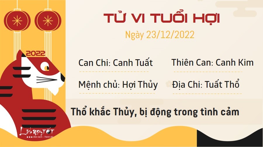 Thổ khắc Thủy, người tuổi Hợi độc thân có vẻ khá bị động trong chuyện tình cảm. Dù đang đem lòng cảm mến ai đó, bạn cũng sẽ không chủ động tiếp xúc, điều đó khiến mối quan hệ giữa hai người luôn lúc gần lúc xa. Nếu đã tìm được nửa kia, bạn cảm thấy hơi bất an vì không biết người ấy có thực sự yêu thương mình không. Dường như người ấy không dành nhiều thời gian quan tâm đến bạn như bạn mong muốn. Nếu có việc cần thiết phải đi xa trong ngày hôm nay, bạn có thể đi về hướng Tây Bắc để gặp Hỷ thần hoặc hướng Tây Nam để gặp Tài thần, đồng thời xuất hành vào giờ hoàng đạo để có thể được may mắn, thuận lợi hơn.