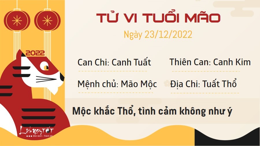 Mộc khắc Thổ, người tuổi Mão độc thân khó có thể tìm được một mối quan hệ triển vọng trong ngày hôm nay. Mọi người tiếp xúc với bạn dường như đều vì một ý đồ nào đó, vì thế mà bạn cảm thấy khá buồn bã. Nếu đã có nửa kia, quan hệ của hai người sẽ phải đối diện với sự phản đối của gia đình. Hãy bình tĩnh giải thích để mọi người thấu hiểu, không nên hành xử nóng nảy, khiến tất cả các mối quan hệ đều bị ảnh hưởng. Hôm nay trực Khai là ngày tốt mọi việc trừ động thổ, an táng. Vì vậy, bản mệnh cần sắp xếp công việc để thực hiện cho phù hợp, có như vậy thì quá trình tiến hành sẽ gặp nhiều may mắn.