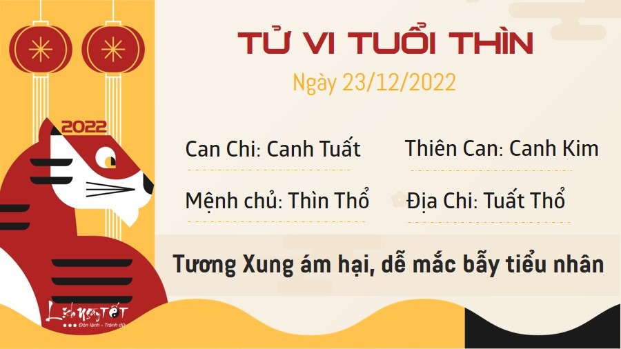 Cục diện Tương Xung ám hại, người tuổi Thìn thường thích nhờ vả người khác hơn là tự mình hoàn thành mọi việc. Chính sự dựa dẫm ấy có thể khiến bạn mắc bẫy của kẻ tiểu nhân. Việc làm ăn kinh doanh cũng cần hết sức thận trọng trong ngày hôm nay, bởi bạn có thể vướng phải khúc mắc với khách hàng. Hãy hành xử phù hợp, đừng nghiêm trọng hóa vấn đề, gây ảnh hưởng đến việc làm ăn kinh doanh của chính mình Theo Hải Thượng Lãn Ông, hôm nay là ngày can Giáp, ngày can Giáp không trị bệnh ở đầu. Cần tránh mọi sự tổn thương, va chạm, mổ xẻ, châm chích tại vị trí này.
