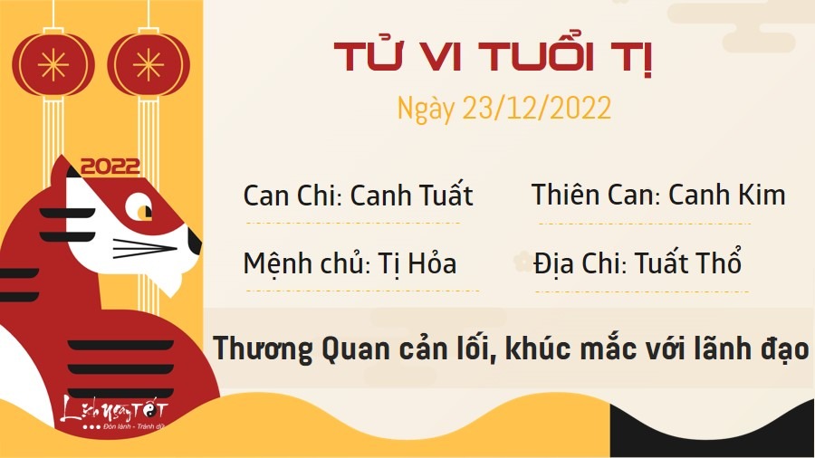 Thương Quan cản lối, người tuổi Tị dễ gặp khúc mắc với người làm lãnh đạo. Bản mệnh cần phải học cách suy nghĩ kĩ càng, cẩn trọng và có cách ứng biến thích hợp trong các tình huống khác nhau nếu muốn có mối quan hệ hài hòa nơi công sở. Trong ngày hôm nay, bạn cũng hạn chế làm thân với người quyền cao chức trọng, bởi chưa chắc bạn đã kiếm được lợi lộc gì, thậm chí bạn còn dễ gặp phải rắc rối lớn. Việc gì bạn cũng nên dựa vào sức của chính mình thì hơn. Hỏa sinh Thổ, người tuổi Tị còn độc thân có thể nhận được sự chú ý của một ai đó. Đối phương đang hoàn toàn nghiêm túc với bạn đấy, vì thế nếu có thể, hãy cho đôi bên cơ hội được tìm hiểu kĩ hơn về nhau