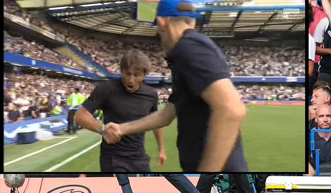 Khi Chelsea nâng tỷ số lên 2-1 ở cú đá cận thành của Reece James ở phút 77, Tuchel đáp trả bằng cách chạy dọc đường biên, qua trước mặt Conte và khu vực kỹ thuật của đội khách. Sau trận, HLV Italy đăng bức ảnh về tình huống này lên Instagram và viết "Thật may mắn khi tôi không thấy hắn ta chạy qua. Không thì tôi đã ngáng chân khiến hắn ta ngã xuống một cách xứng đáng rồi", kèm ba biểu tượng cảm xúc dở khóc dở cười.