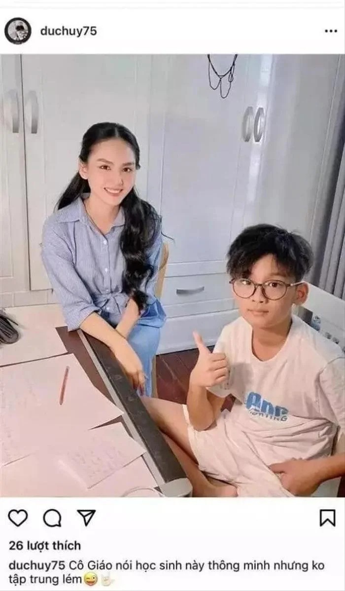 Không chỉ có thế, bé Bo - con trai Lệ Quyên và Đức Huy - còn chia sẻ lại hình ảnh của Mai Phương và cho biết: "Ms Vietnam at my house" (Tạm dịch: Hoa hậu tại nhà tôi). Động thái này của 2 cô trò đã khiến cư dân mạng không khỏi bàn tán xôn xao.