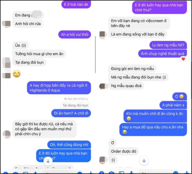 "Thôi, tự order đi cho chi tiết chứ nhắn tin nhờ cũng mệt rồi, người mẫu đang đói thì tự ăn đi, đào mỏ ngay lần đầu nói chuyện vậy ai chấp nhận nổi"