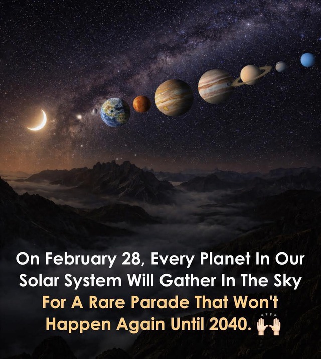 Vào ngày 28 tháng 2 sắp tới, những người đam mê thiên văn học sẽ có cơ hội chứng kiến một sự kiện vô cùng đặc biệt được gọi là cuộc diễu hành hành tinh. Theo thông báo chính thức từ cơ quan hàng không và vũ trụ quốc gia Mỹ (NASA), sáu người hàng xóm của hành tinh chúng ta sẽ cùng nhau hiện diện trên bầu trời đêm.