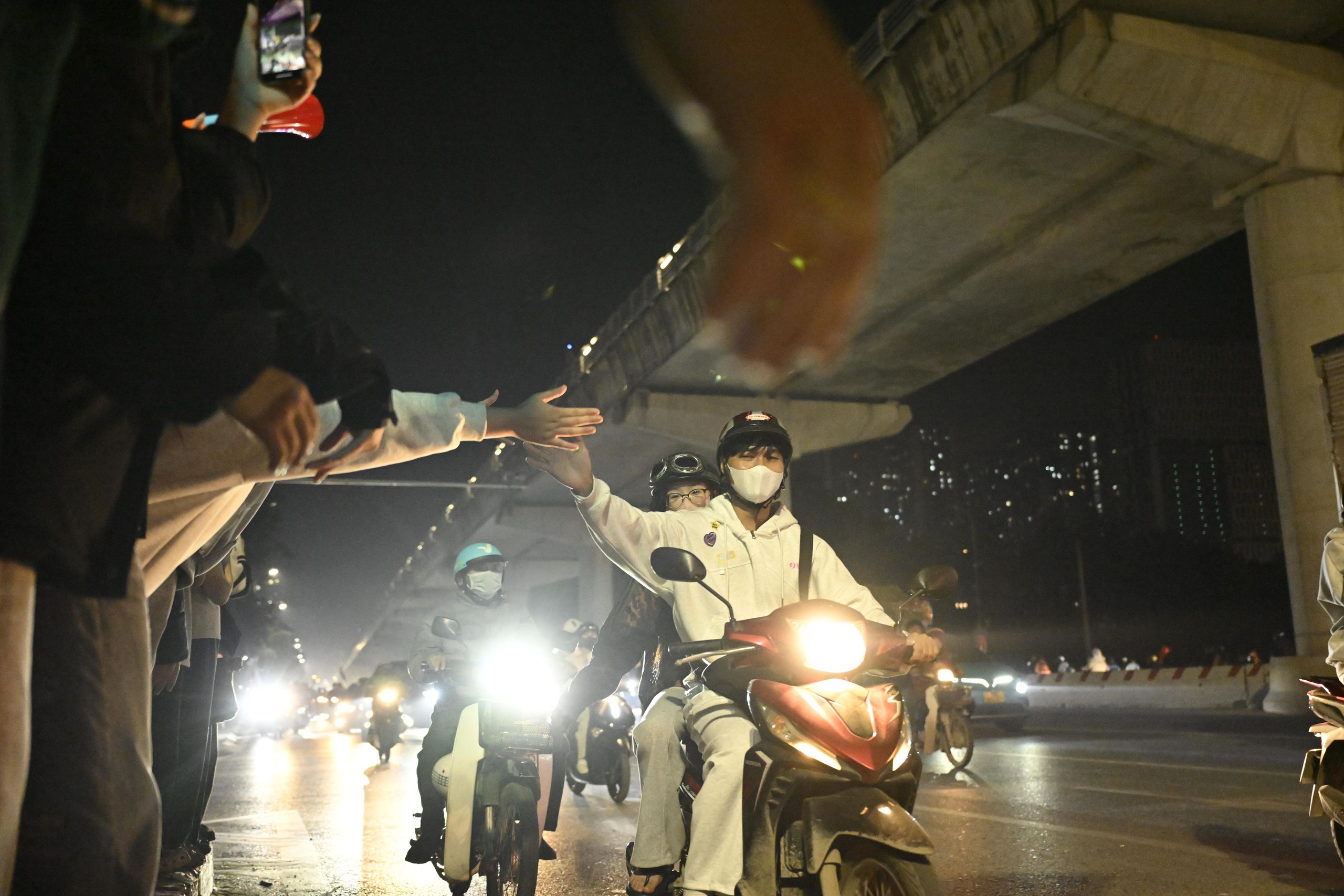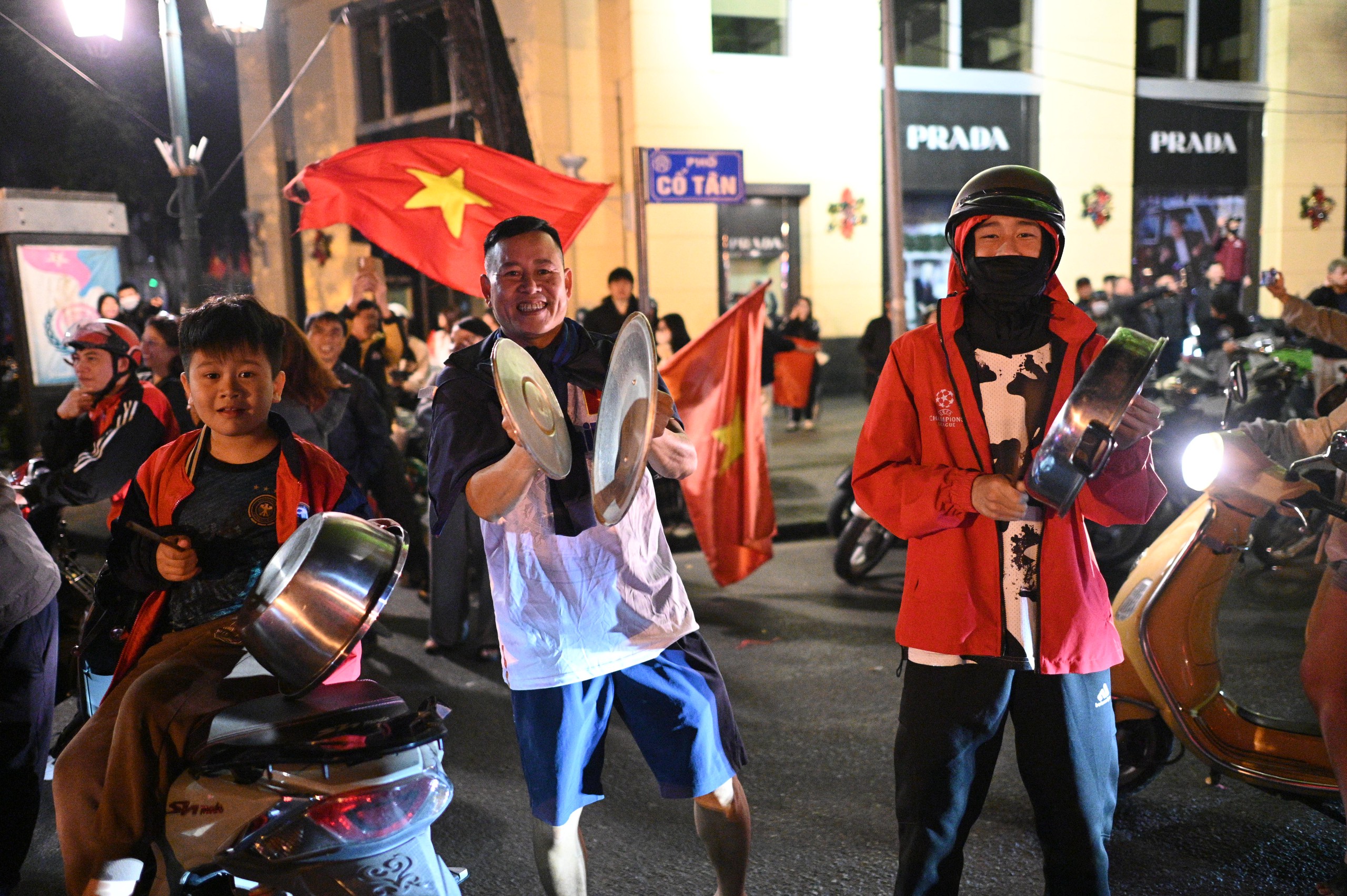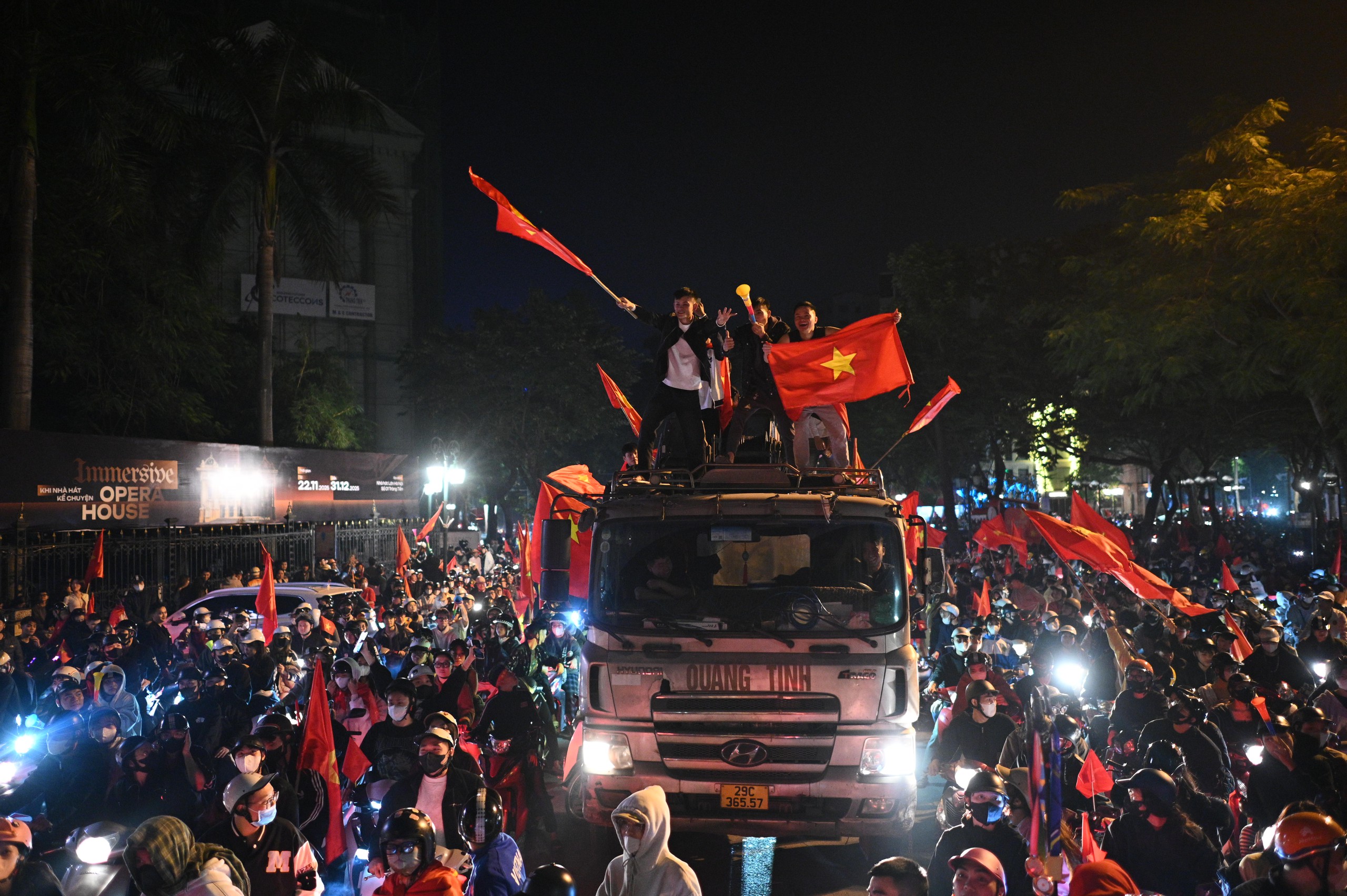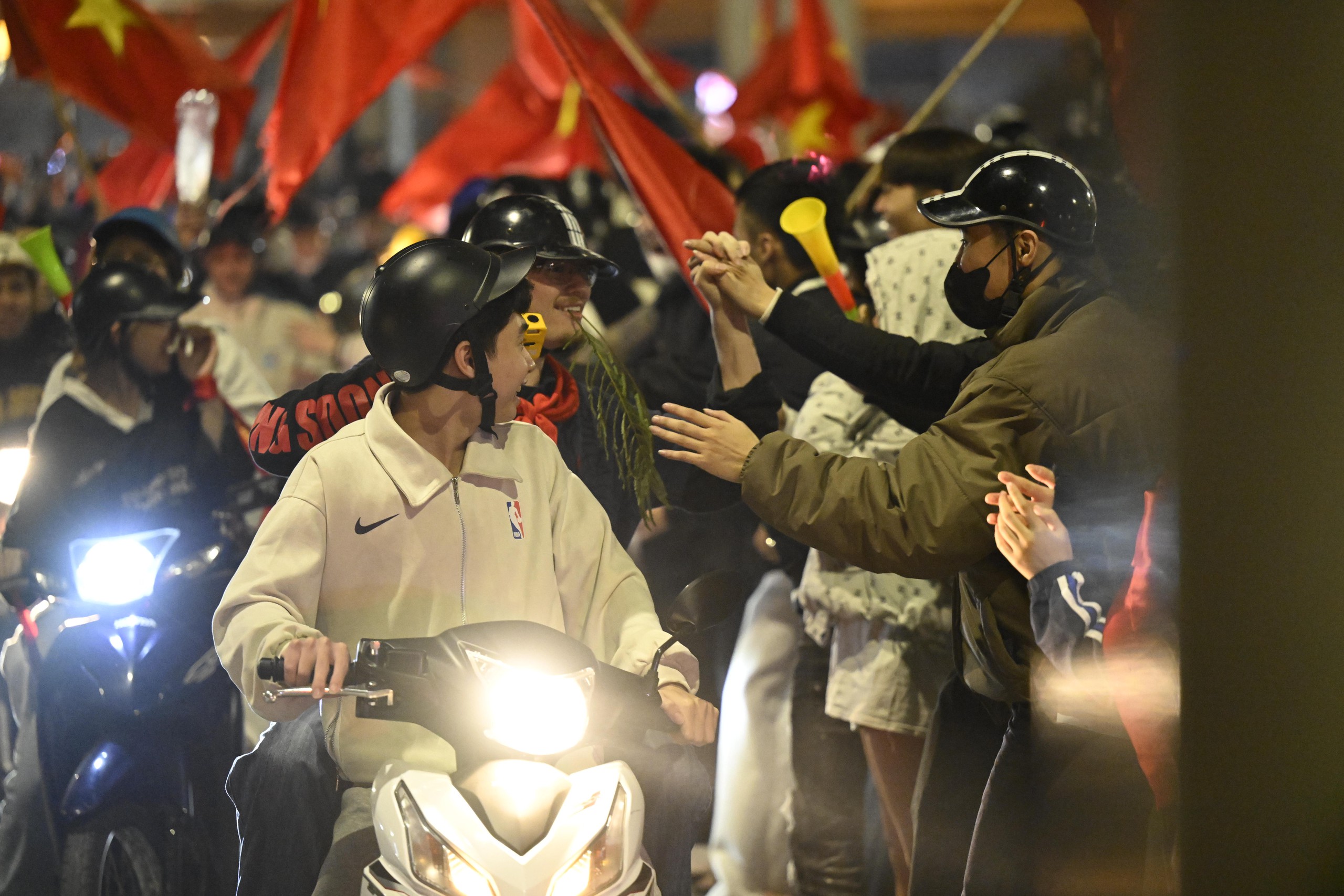 Từ trung tâm thành phố đến các khu dân cư, người dân đồng loạt đổ ra đường ăn mừng, tạo nên một đêm không ngủ rực sắc đỏ sao vàng.