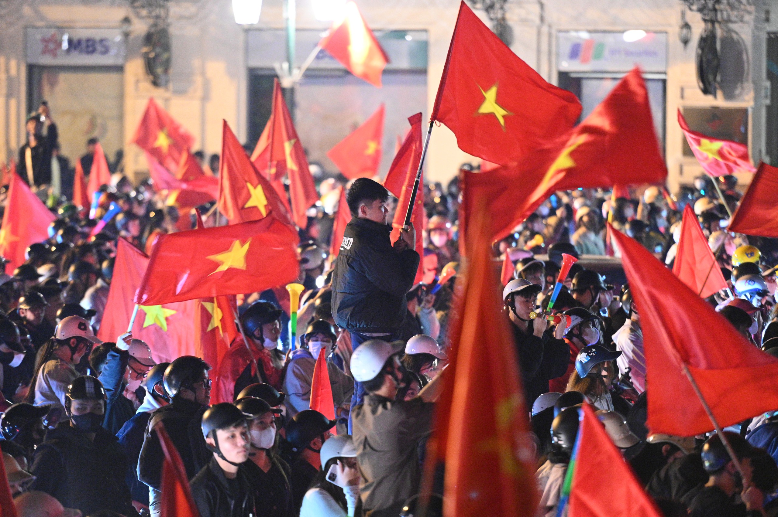 Tối 18/12, sau khi đội tuyển U22 Việt Nam vượt qua U22 Thái Lan với tỷ số 3-2 để giành ngôi vô địch SEA Game 33, hàng nghìn người dân đã tràn xuống các con đường trung tâm ở Hà Nội và TP.HCM để ăn mừng chiến thắng. Những lá cờ Tổ quốc tung bay rực rỡ, nhuộm đỏ khắp các tuyến phố.