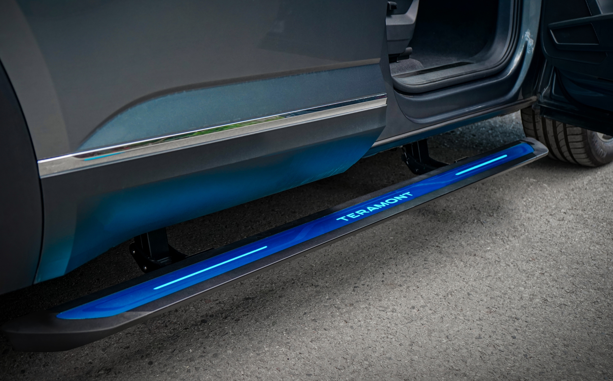 Cụ thể, so với bản thường, Volkswagen Teramont Limited Edition thêm nhiều trang bị cao cấp. Về ngoại thất, có thể kể đến mâm 20 inch hai tông màu thể thao. Bản thường chỉ một tông màu trắng kim loại. Bệ bước điện có đèn LED với tên xe Teramont phát sáng, hỗ trợ cho việc lên xuống xe và tăng tính sang trọng.