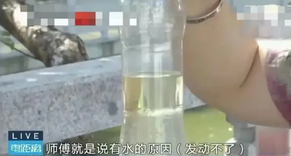 Số xăng pha nước được rút ra từ bình xăng, vì xăng và nước không thể hòa tan vào nhau vì thế đã xảy ra hiện tượng tách lớp. Ảnh: Sohu