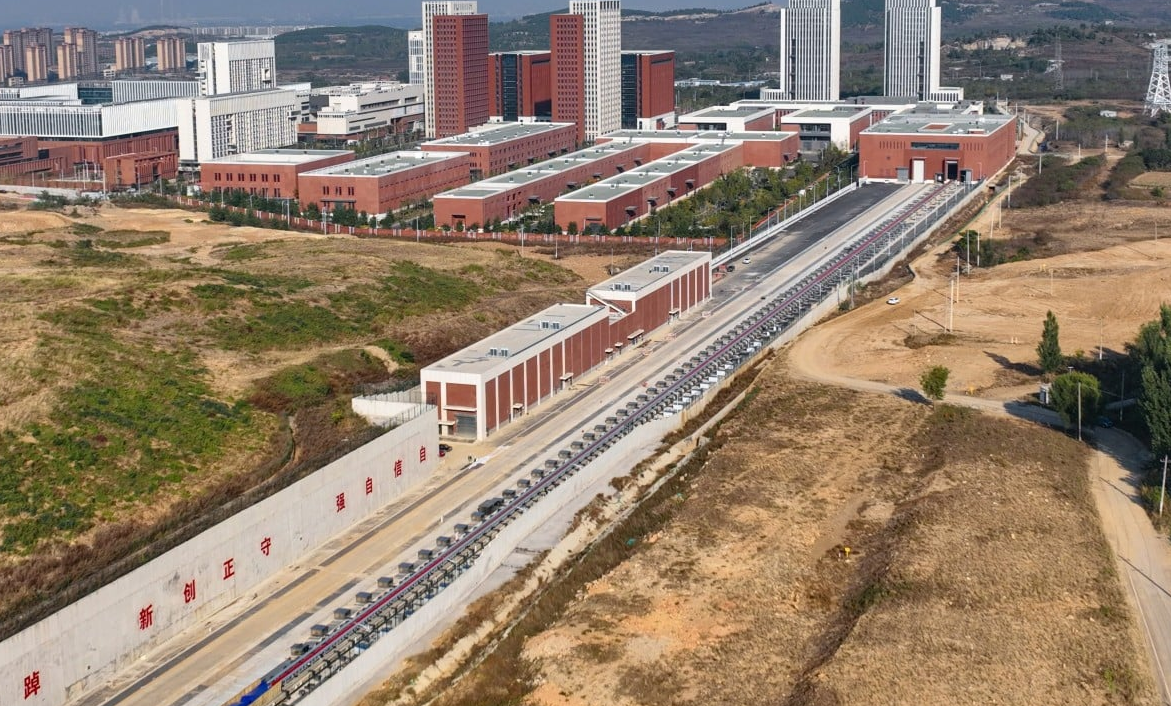 Hệ thống đường ray điện từ tại Tế Nam, Trung Quốc. Ảnh: CCTV