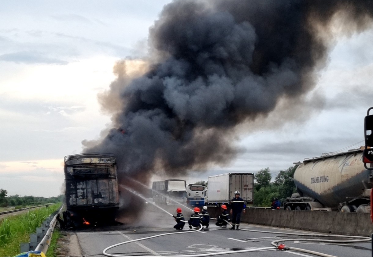 Trạm CSGT Hải Lăng đã tập trung lực lượng giúp tài xế dập lửa, đồng thời báo cho lực lượng PCCC. Sau 2 giờ, lực lượng chức năng đã khống chế được đám cháy.