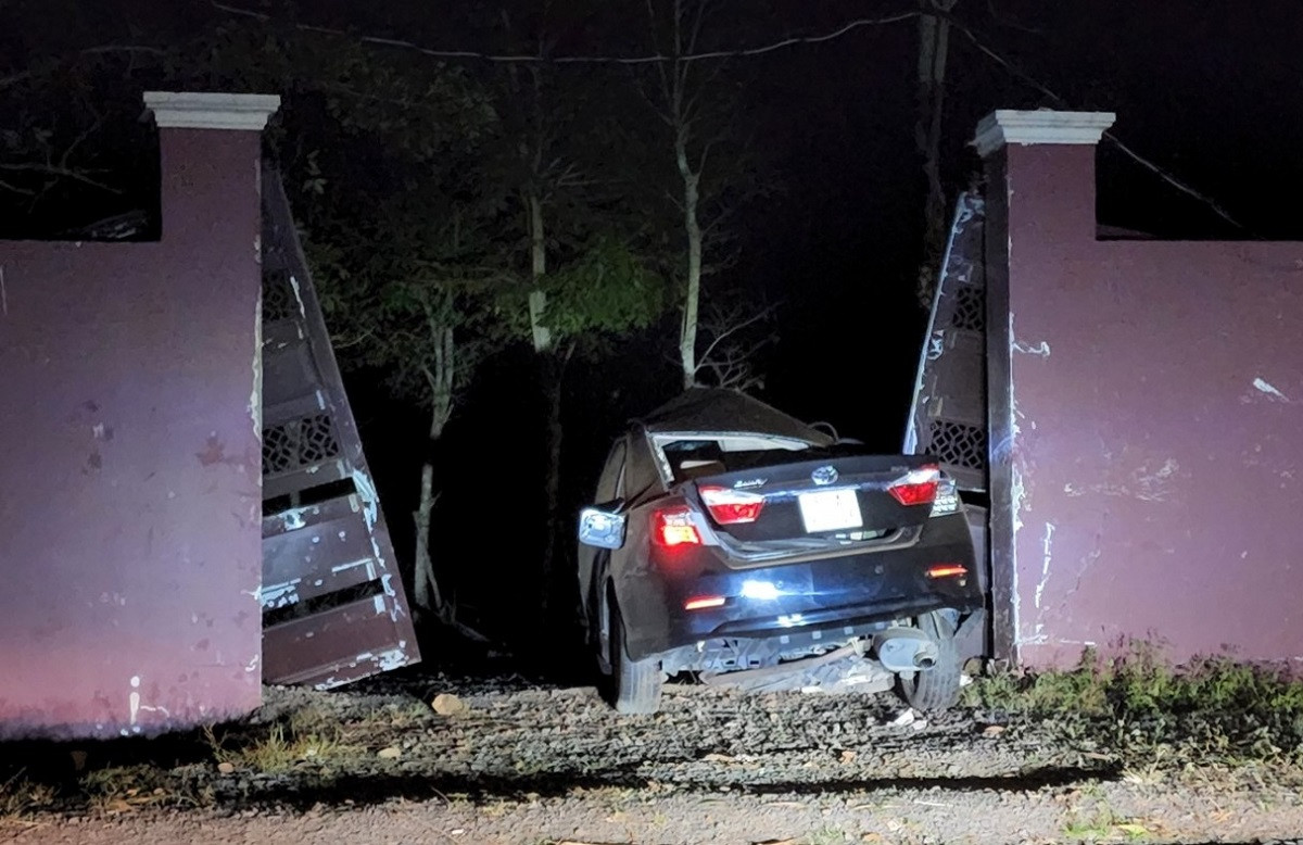 Khi đến vị trí cách cầu Ông Minh, xã Bình Trung khoảng 150m, xe ô tô lao qua phần đường bên trái, đâm thẳng vào cổng sắt tường rào nhà dân. Hậu quả, anh N. và T. mắc kẹt trong xe, tử vong.