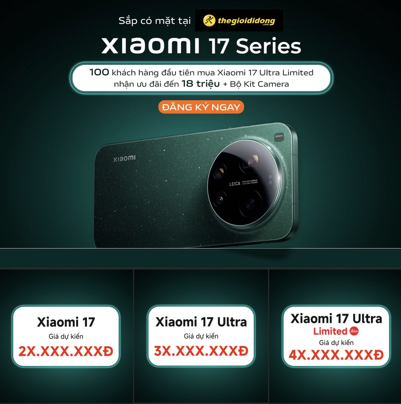 Tại Việt Nam, hệ thống cửa hàng Thế Giới Di Động công bố giá cho dòng Xiaomi 17 series từ 2x triệu đồng tới 4x triệu đồng, tặng kèm bộ Photography Kit cho 100 khách hàng đầu tiên. Hiện chưa rõ liệu chuỗi này sẽ độc quyền phiên bản nào.
