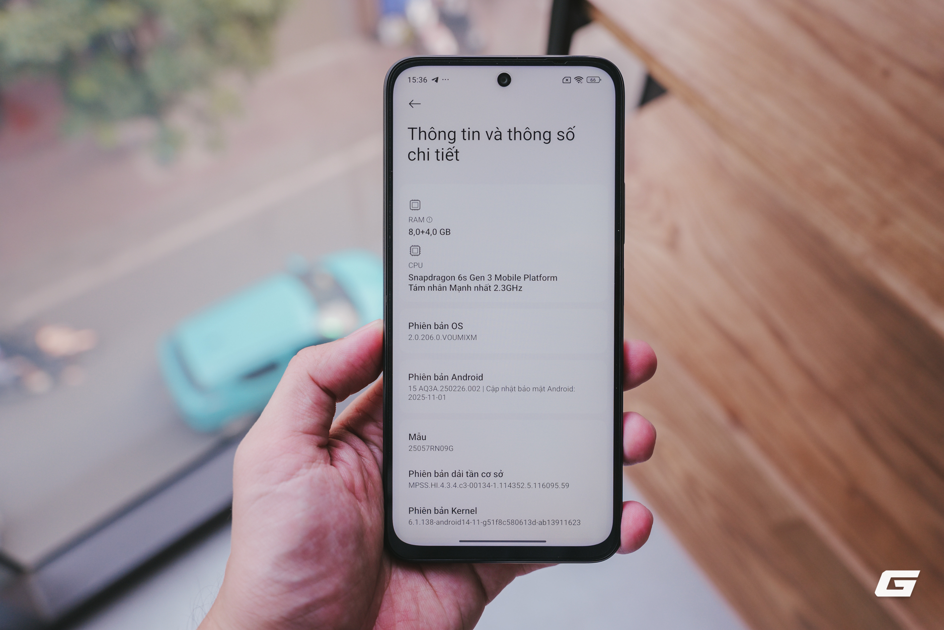 Về cấu hình, Redmi 15 5G sử dụng con chip Snapdragon 6s Gen 3, đi kèm RAM và bộ nhớ trong ở mức vừa đủ cho nhu cầu phổ thông. Trải nghiệm thực tế hướng tới sự ổn định hơn là hiệu năng cao: máy đáp ứng tốt các tác vụ thường ngày, còn với game nặng hay xử lý đồ họa cao, đây không phải là nhóm người dùng mà sản phẩm nhắm tới. Camera chính 50MP và camera trước 8MP cũng ở mức "đủ dùng", phù hợp chụp ảnh sinh hoạt, ghi lại khoảnh khắc hằng ngày thay vì chạy theo chất lượng nhiếp ảnh cao cấp.