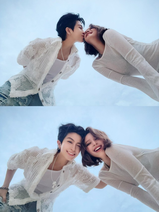 Cô còn chia sẻ hình ảnh tình cảm nắm tay với Gil Lê trên bãi biển. Cả hai nhiệt tình phát cẩu lương sau khi công khai mối quan hệ