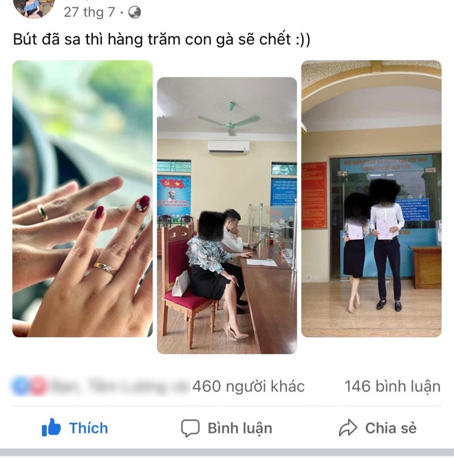 Kèm theo bài đăng là loạt hình ảnh chứng minh những gì chị M. nói là thật. Chị đã chia sẻ hình ảnh em trai ruột của chị và T. đăng ký kết hôn; đoạn tin nhắn T. hẹn hò với 2 gã đàn ông đã có gia đình, đặc biệt là hình ảnh chị cùng em gái của mình bắt quả tang T. trong khách sạn với một người đàn ông, sau đó “dắt” về nhà mẹ đẻ của T.