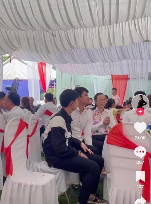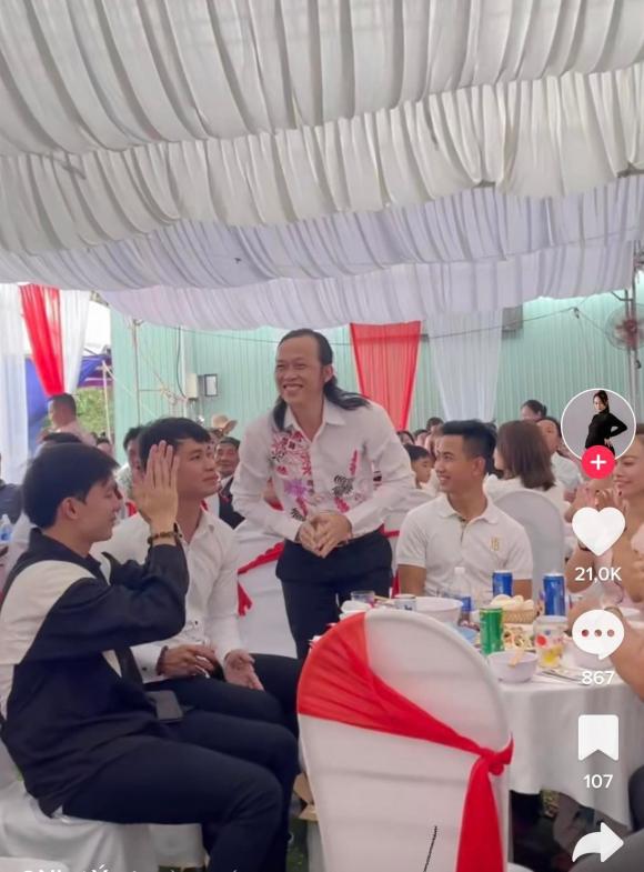 Sau đó, khi MC giới thiệu: "Danh hài Hoài Linh về đây tham dự ngày vui của cô dâu chú rể. Mời Hoài Linh đứng dậy chào khán giả một tiếng, cho một tràng vỗ tay, xin được chào đón. Xin cảm ơn", "Sáu bảnh" đã tươi cười đứng lên chào hỏi các quan khách.