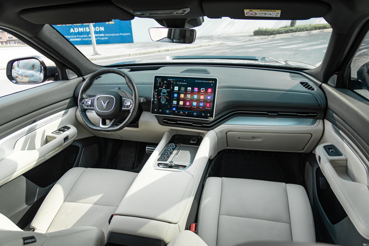 EV9 có khoang hành khách 7 chỗ ngồi rộng rãi không kém gì VF 9, nhưng lại vượt trội với hàng ghế thứ hai xoay 180 độ. Dẫu vậy, đại diện đến từ Việt Nam lại tỏ ra độc đáo hơn khi xóa đi cụm đồng hồ sau vô lăng và lược bỏ hầu hết phím trên khoang cabin. Mọi tiện ích đều được tích hợp trên màn hình kích thước 15,6 inch siêu lớn.